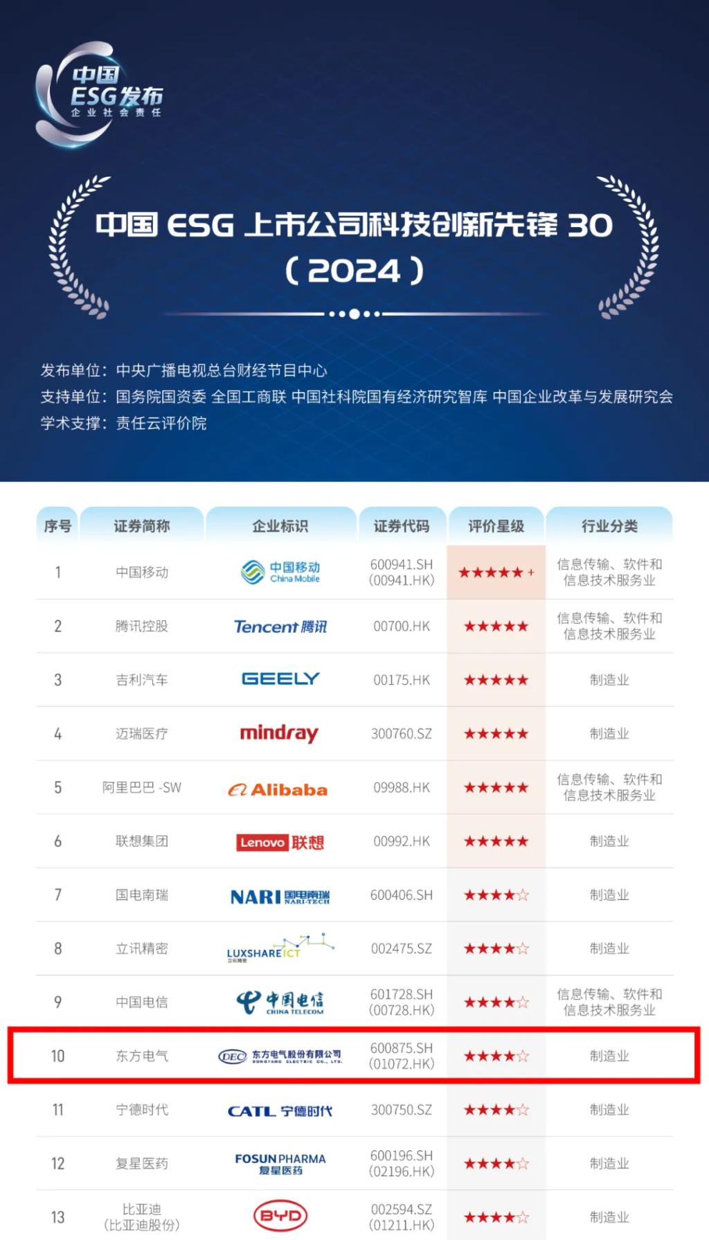 该报告以972家上市公司作为样本,从中筛选出237家科技属性较强的企业作为研究评价对象,最终遴选了30家在ESG方面表现卓越的企业构成此次榜单。