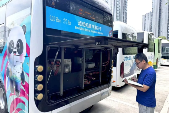 为践行成都世运会绿色低碳办赛理念,这批氢能公交车通过“氢”和“氧”的电化学反应产生电能从而驱动车辆,全程只产生水,真正实现零排放
