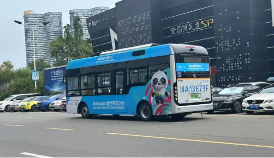 在供氢系统上,配备了20千克大容量供氢系统,加满氢仅需10分钟,综合续航超过500公里,适应成都主城区及周边区域。各种路况乘运完全满足成都世运会交通保障需要。