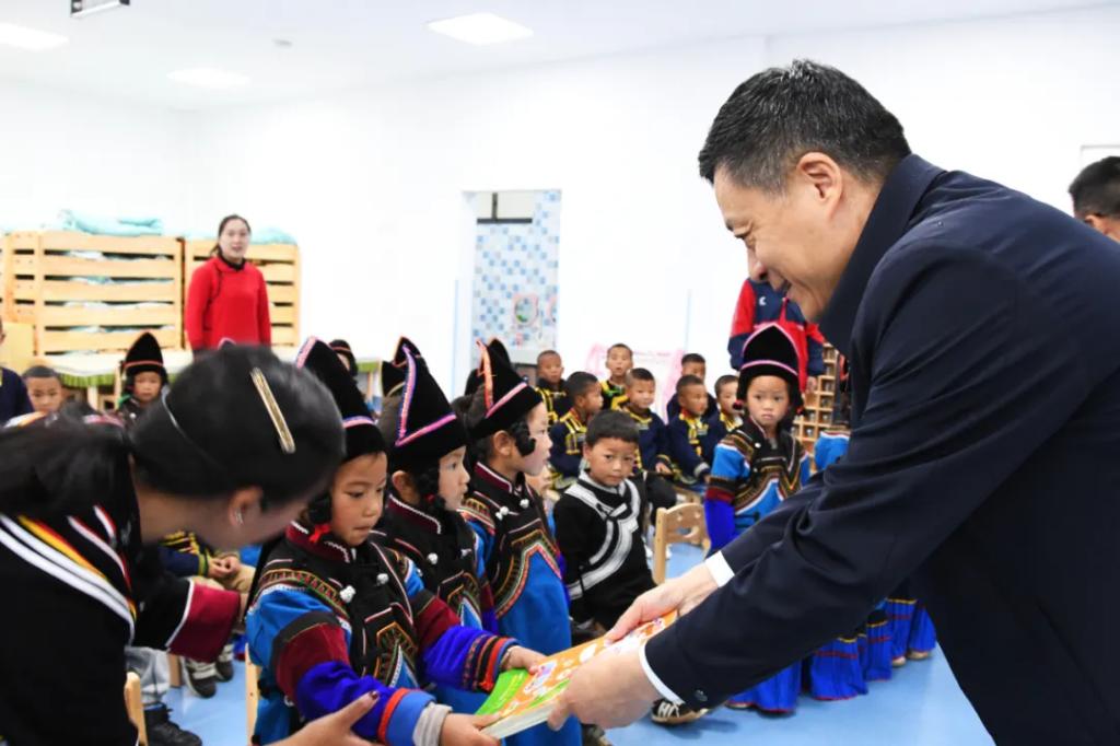 在优发国际洛且博村幼儿园,俞培根深入了解幼教设施建设情况和当地适龄儿童学前教育情况,为幼儿园小朋友赠送书籍绘本。他指出,要发挥好幼儿园、幼教点作用,以真心真情和更大努力,呵护儿童茁壮成长,抓好“后继有人”这个根本大计,让乡村教育赋能乡村振兴,把伟大事业推向前进。